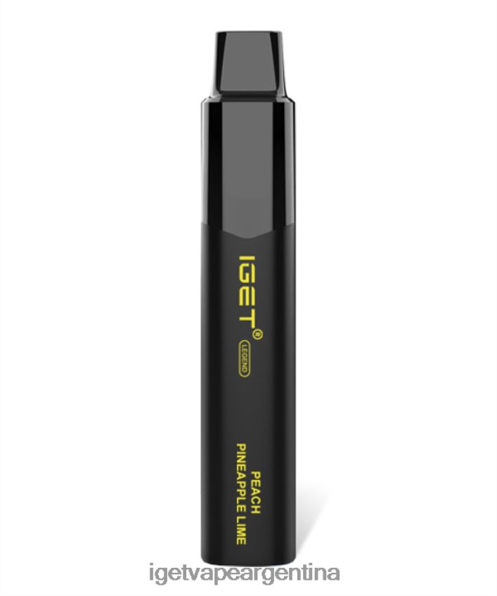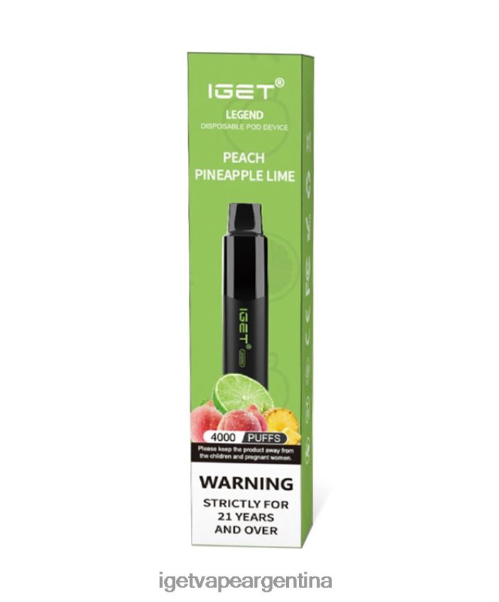 el iget legend melocotón, piña y lima es una mezcla única de melocotones dulces y piña tropical con un acabado cítrico a lima.