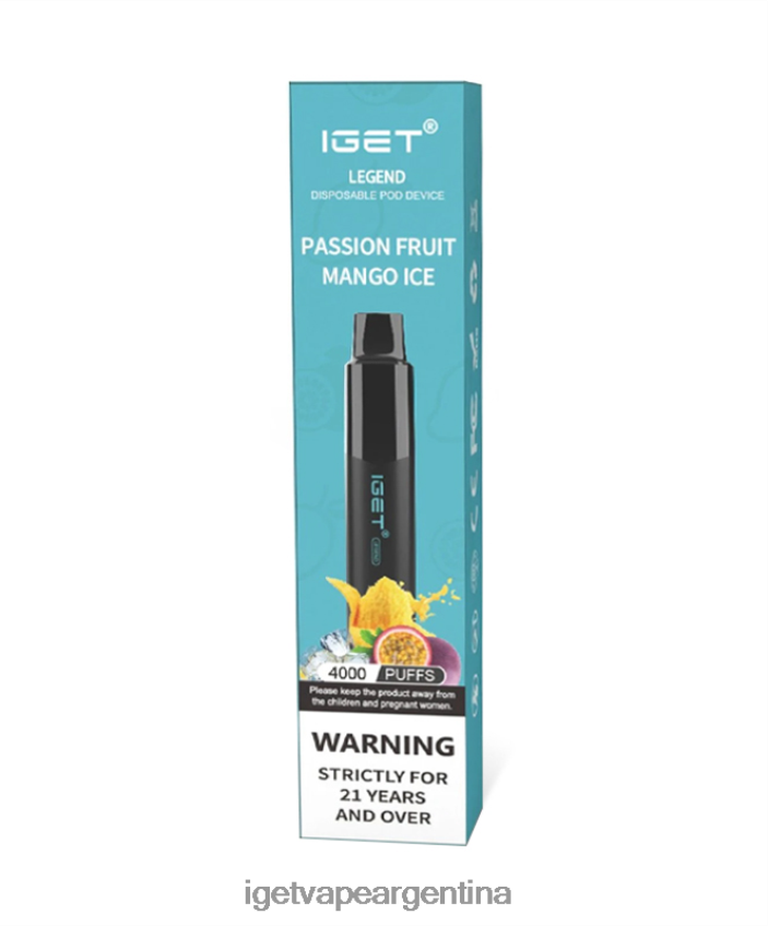 el iget legend de hielo de mango y maracuyá proporciona un sabor dulce a mango mezclado con maracuyá exótica, hecho como hielo y con un acabado mentolado.